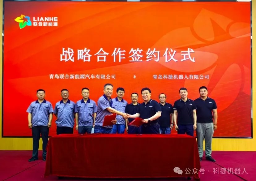 6月12日,科捷機(jī)器人與聯(lián)合新能源在青島膠州上合智捷工廠舉行戰(zhàn)略簽約儀式,